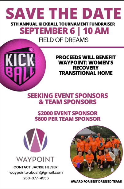 Join us for the 5th Annual Waypoint Fundraiser Kickball Tournament.